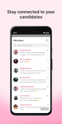 Use the mobile app to: - Screen candidates and manage their applications - Review and rate candidates - Communicate with candidates and leads visiting your career site - Schedule and view meetings - Edit candidate profiles - Fill out interview kits