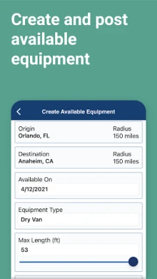 · Create available equipment postings for empty capacity. Do you have a truck you're needing a shipment for? Enter it on our app and let us do the searching the for you!