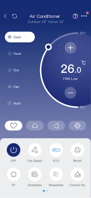 1. Simply Control Air conditioner: Comfort, Efficiency, and Safety. 2. New User Experience: Special functions and UI interactive design 3. Remote Control: Obtain and Modify Your Home Air Quality Anywhere 4. Sleep Curve: Customize Your Comfortable Sleep 5. Time Scheduling: Auto Switch by Appointment Time Please check the User Manual for detailed information.
