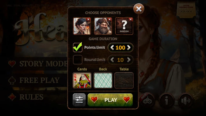 ☆ Multiple card decks and game tables. Customize your own Hearts game experience