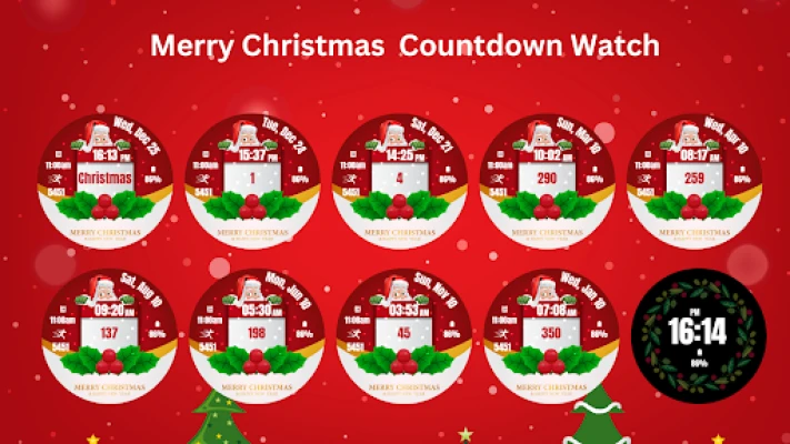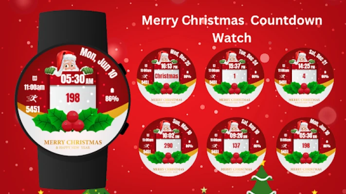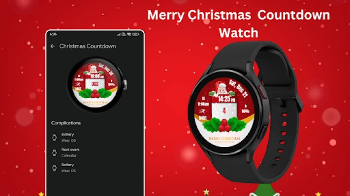 Get ready for the holidays with the Merry Christmas Countdown Watch Face! This festive watch face displays a live countdown to Christmas Day, bringing excitement to your wrist. Along with the countdown, it shows time, date, heart rate, steps, and battery percentage, all wrapped in a joyful holiday design.