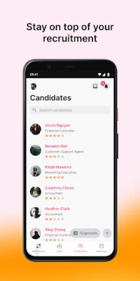 Use the mobile app to: - Screen candidates and manage their applications - Review and rate candidates - Communicate with candidates and leads visiting your career site - Schedule and view meetings - Edit candidate profiles - Fill out interview kits