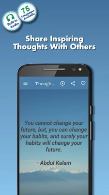 “Thought Of The Day: Fab Quotes” is the Best and Unique collection of inspirational quotes / thoughts. It is a completely Offline and Free App. All thoughts are available in 75 Languages with Audio, so you can select your own Language.