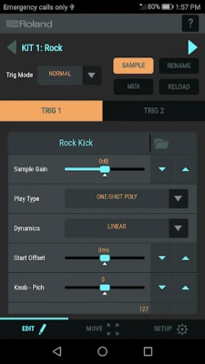 The free TM-1 Editor app provides a powerful command center for customizing your Roland TM-1 Trigger Module for different stage and studio performances. The app gives you the ability to import your own original samples, and includes 150 pro-quality samples to work with as well. Via a simple interface, you can assign sounds to the trigger inputs and edit various parameters, and then save your setups as custom kits on your device.* To prepare for the gig, simply connect your device, transfer the desired kits to the TM-1’s onboard memory, and you’re ready to go! Kits load almost instantly, making it easy to change up sounds as needed between sets.
